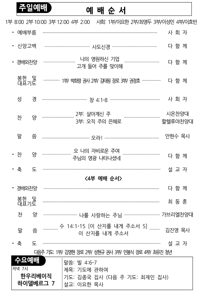 예배안내